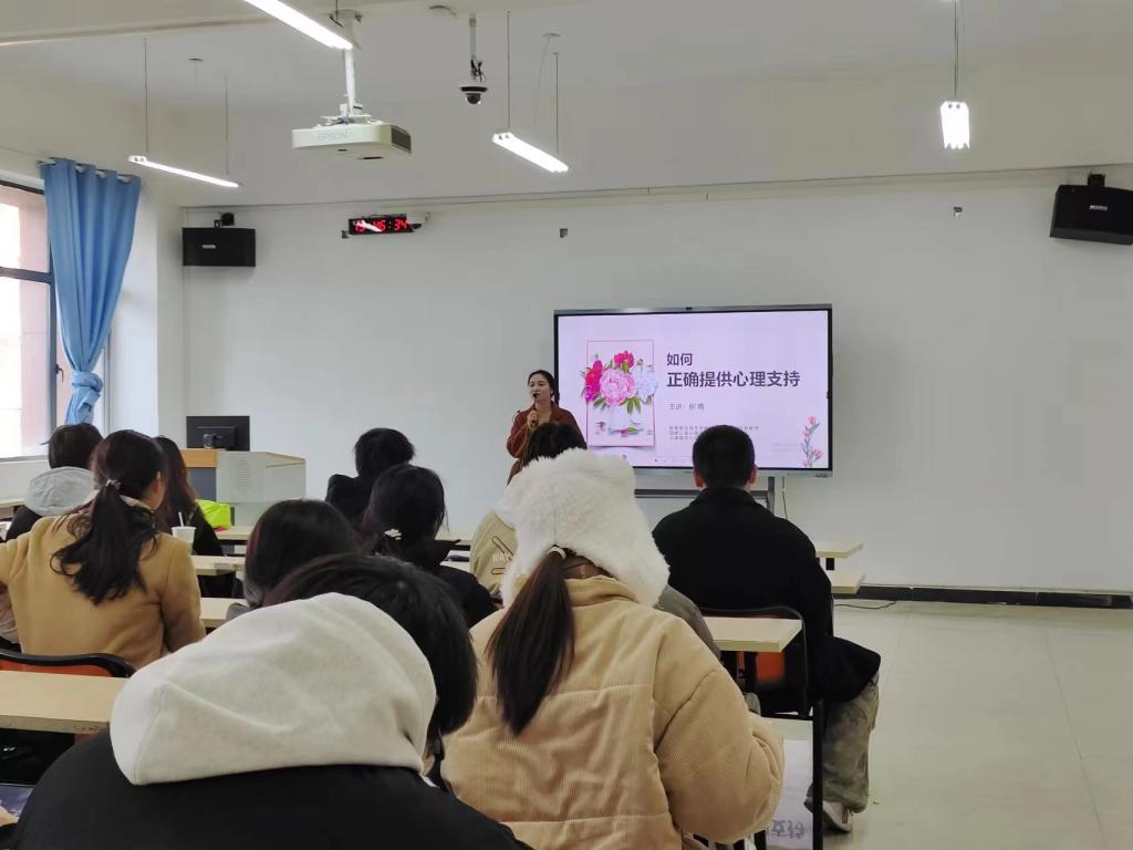 讲座邀请学校心理健康中心的柳青老师进行授课,柳以《如何正确提供心理支持》为主题,分别讲解了心理健康状态的分类、按照情绪的强烈程度、持续时间和社会功能是否受到影响等方面。心理咨询是相互托举与成长的关键,旨在帮助个人解决情感困扰和增强心理健康和幸福感。心理常识包括情绪管理、压力应对、人际关系、自我认知等方面的知识,能够帮助人们更好地理解自己和他人的心理状态和行为。电商23301班心理委员说:“整场讲座生动具体,深入浅出,有效地帮助我们减轻压力,正向引导我们建立良好心态。”