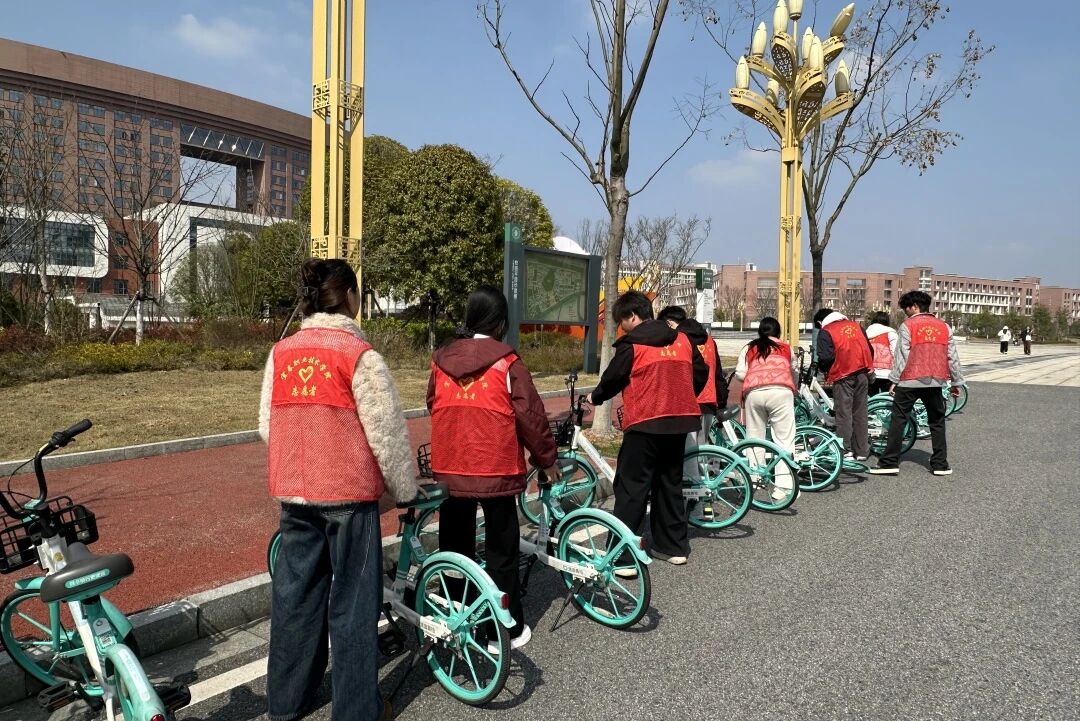 活动过程中,志愿者们全力开展“扶正”行动,将倒地、歪斜的单车逐一归位,按车头统一朝向标准排列,预留通行与盲道空间。大家还细心擦拭车座、车把,清理车筐内垃圾,让校园共享单车整洁如新。活动全程,志愿者们严守安全规范,做好防护、轻拿轻放,细心完成各项任务,既避免车辆损伤,也保障自身安全。