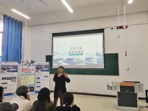 本站讯(经济管理学院 马思源)为促进学生全面了解就业形势,明确就业创业方向,经济管理学院于11月29日举办天成文旅旅游公司的校园招聘会,旅游酒店专业学生积极参加。 招聘会上,招聘单位通过播放宣传片、ppt展示、面对面交流等方式向同学们介绍公司的概况、职业发展方向、招聘需求等,学院领导高度重视本次校园招聘会,细心询问企业的情况,为学生提供良好的就业平台。学生也主动与企业沟通交流,并对感兴趣的企业投递简历。 本次校园招聘会,为学生们开辟了就业渠道,满足学生的就业需求,促进学院高质量就业。 上一条:经济管理学院举办“明月山旅游集团”校园招聘会 下一条:经济管理学院举办“维景国际温泉度假酒店”校园招聘会