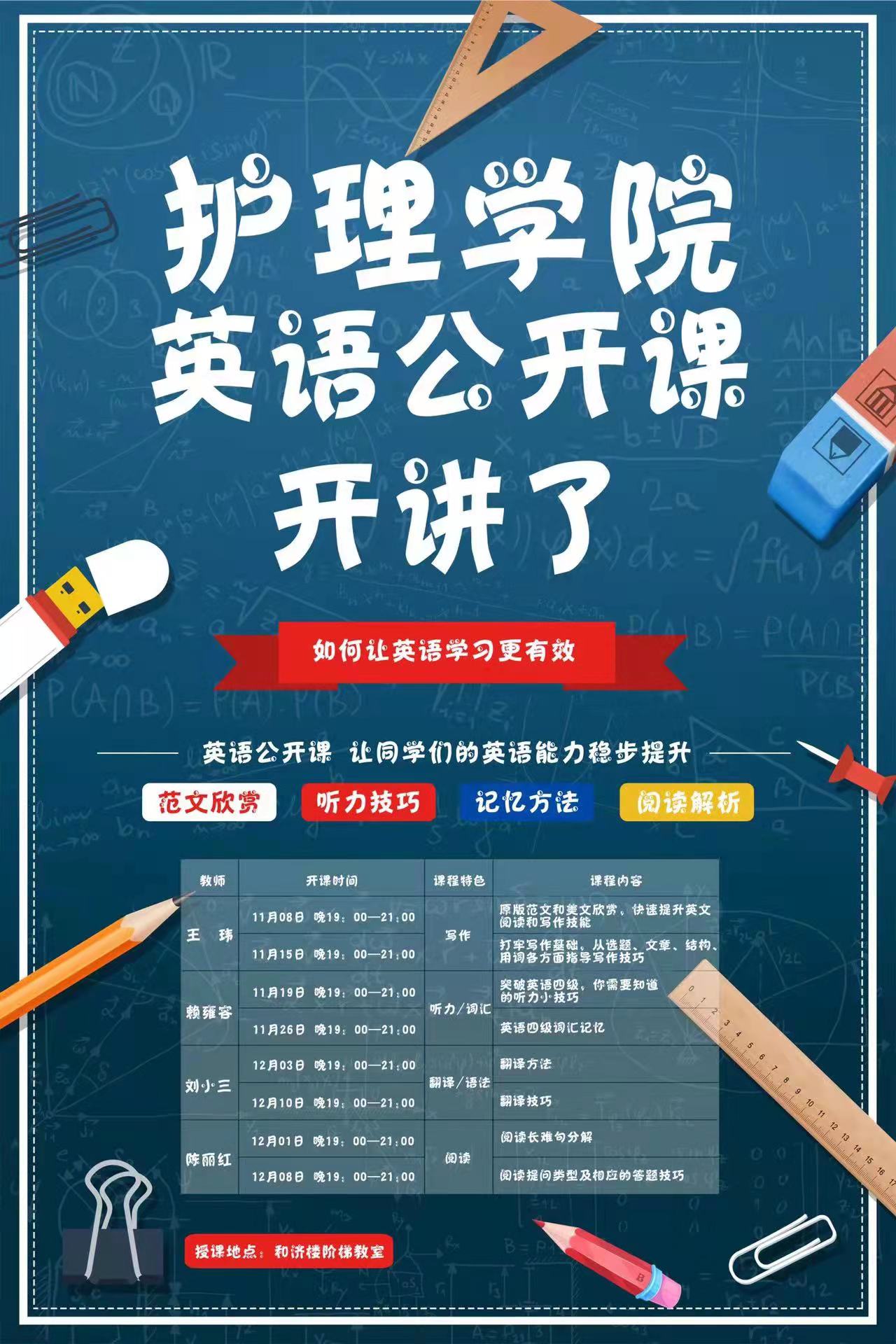 课后,同学们个个精神抖擞,信心满满,纷纷表示非常精彩。护理21309班的魏志琴同学说,原来我不爱学英语的,但听了老师的公开课,感觉很好!老师课上教我们的英语学习思路和技巧非常好,讲练结合,还认真的为我们答疑,增强了我们学英语用英语的自信心!