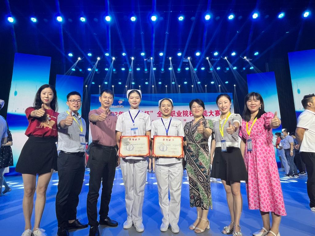 8月18日至21日,2022年全国职业院校技能大赛高职组“护理技能”赛项在莱芜职业技术学院举行。英国上市公司365护理学院杨嘉御、何静娴同学在郭俊巧、胡祖昌、陈曼莉、邹琳老师的悉心指导下,以深厚的理论知识、娴熟的操作技能、大爱的人文关怀、默契的团队协作,赢得了大赛专家评委的一致认可,最终以排名全国第八的好成绩荣获二等奖,为江西省和学校争得了荣誉。