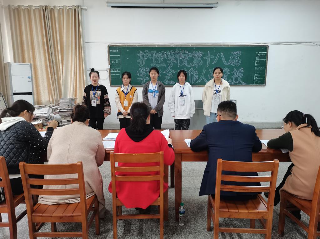为进一步深化学生会组织改革,加强学生会工作人员队伍建设,进一步促进学生会在我院学生管理工作中发挥积极作用。3月19日,护理学院在第五教学楼206教室举行了第十八届学生会工作人员选拔工作。护理学院党总支书记胡蓉、副院长张蔺珊、党总支副书记王玮,学工科长曲晴、团总支负责人刘小三等担任本次选拔面试的评委,共82位学生会工作人员候选人参与选拔面试。