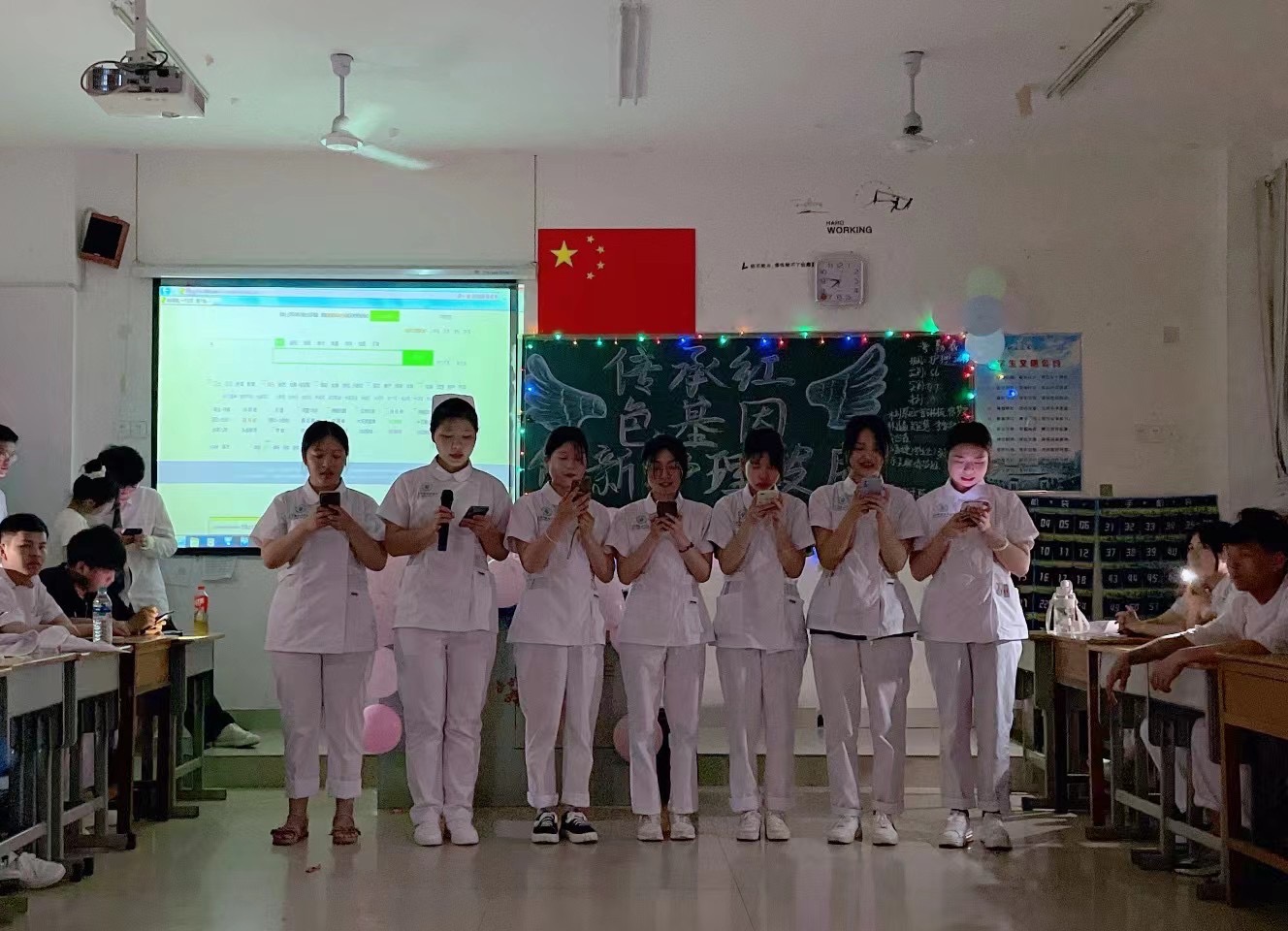 为纪念第110个国际护士节,5月12日晚,护理学院在校各班举行了“传承红色基因,创新护理发