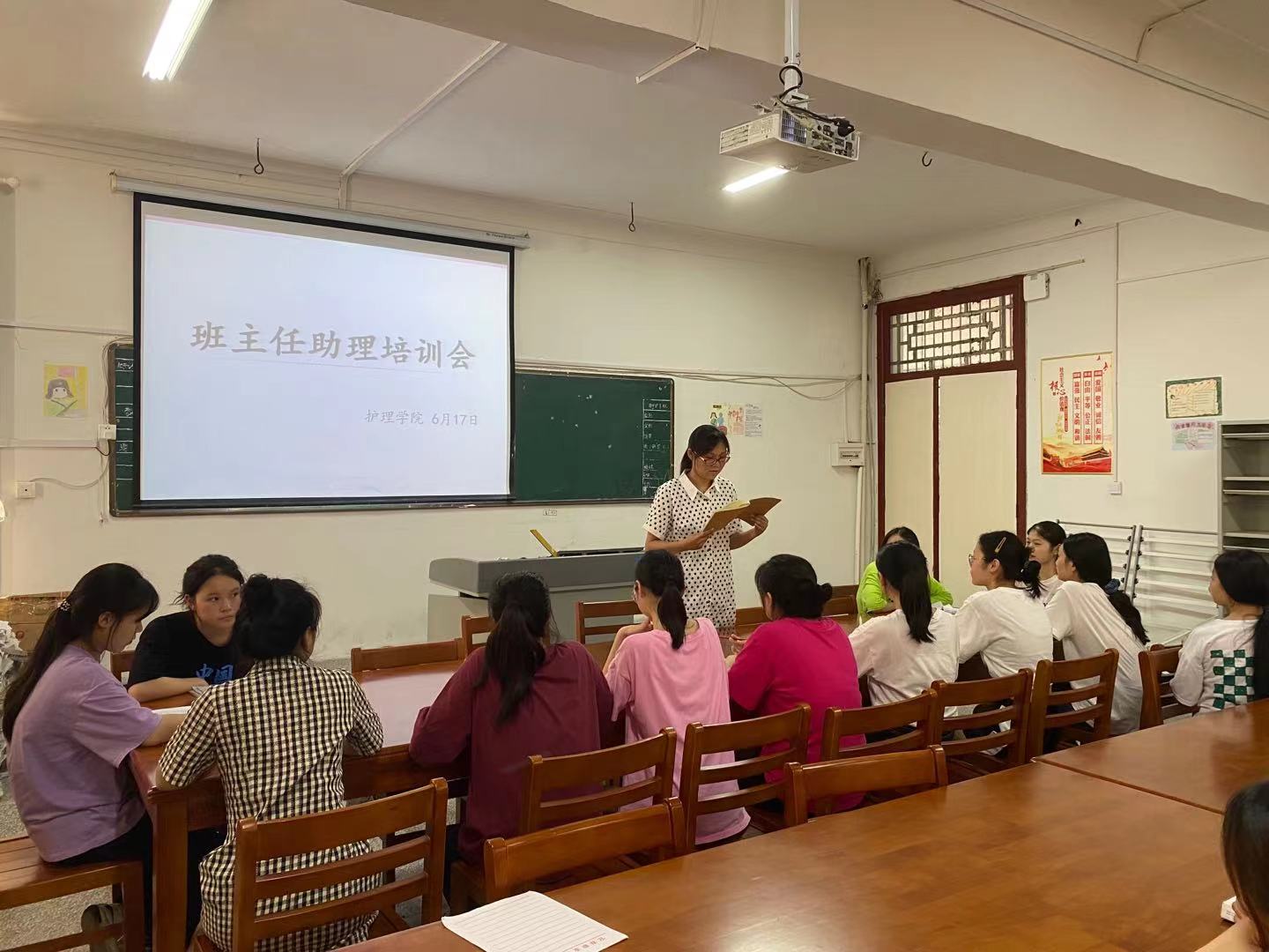 为提前做好2021级新生军训及入学教育相关工作,6月17日,护理学院在五教学楼阅览室召开2021级班主任助理培训会,