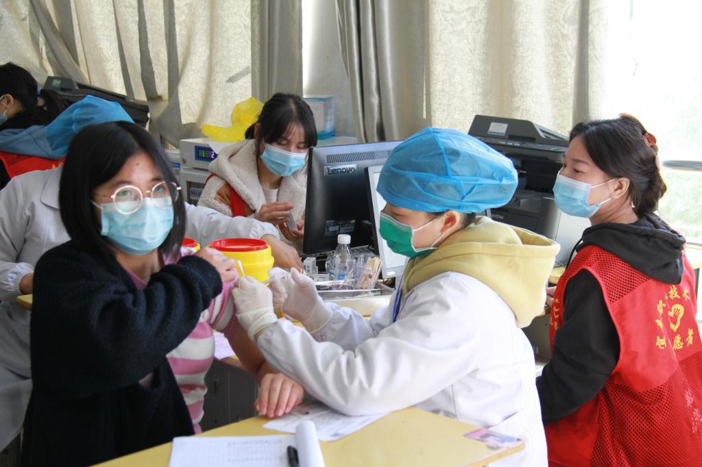 在接种活动现场,身穿红色马甲的志愿者们积极参与,合理分工,协助医护人员进行血压测量、信息登记。他们热情地引导同学们填写表格,认真询问接种前两针时有无身体不适,暖心提醒接种疫苗后的有关注意事项,为同学们答疑解惑。接种现场井然有序,志愿者同医护人员精心配合,提高了疫苗接种效率,志愿者的积极表现是对志愿者精神最好的诠释!