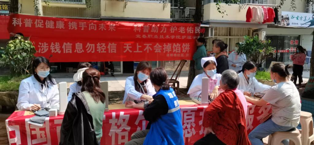 2023年护理科普活动周定于5月8日至14日在全国各地集中开展,护理学院响应中华护理学会“护理科普活动周”倡议,深入开展“我为群众办实事”实践活动,结合护理专业特色,5月12日来到袁州区湛郎桥社区的阳光新城小区,以线下宣讲、义诊等形式开展护理科普周主题活动。