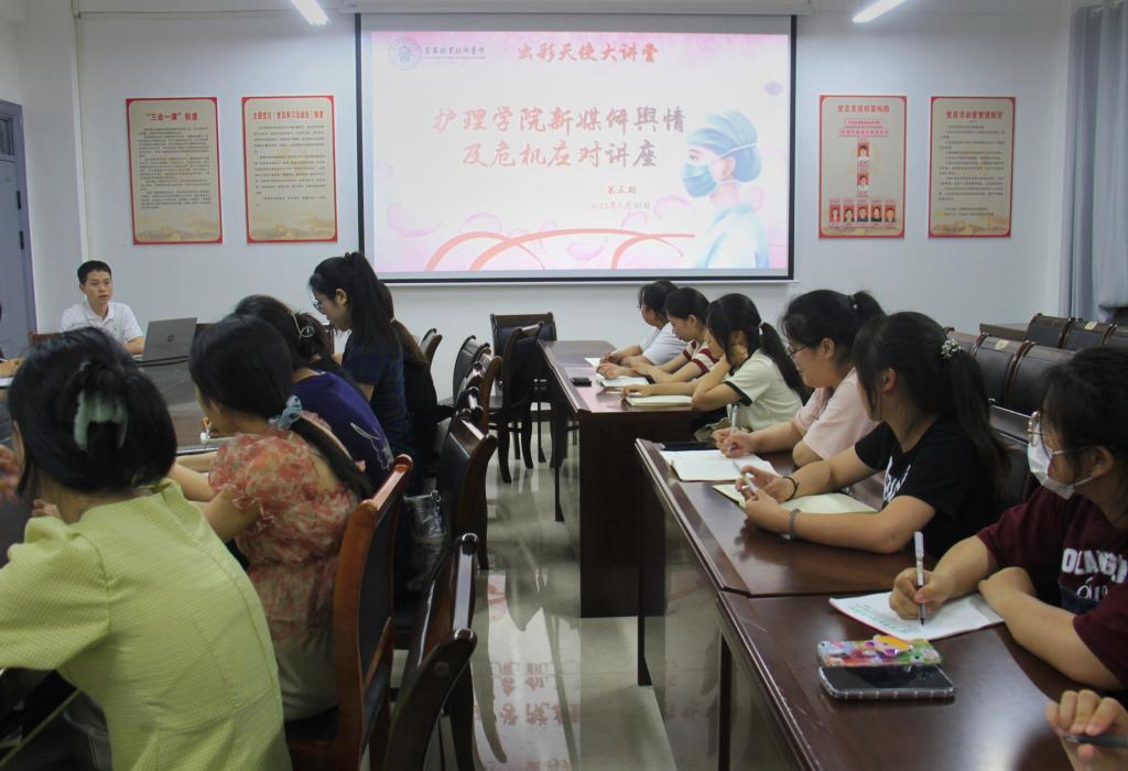 为切实加强网络舆情处置工作,强化舆情处置能力,全面提升学院宣传思想工作队伍素质,5月30日,护理学院在和济楼C218召开新媒体舆情及危机应对讲座,护理学院学生会宣传部工作人员及各班宣传委员参加,辅导员刘明健主持。