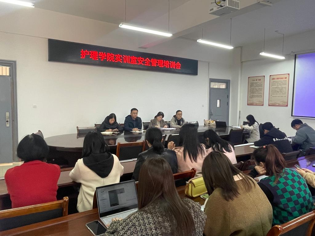 为加强高校实验实训室安全管理,增强师生安全意识11月14日下午,护理学院在和济楼C218召开实训室安全管理培训会,学院班子成员及全体教师参加