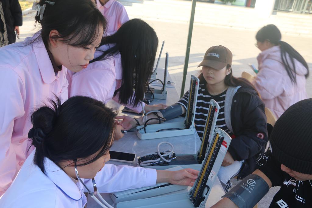 活动现场,志愿者们分工明确,细致耐心地为师生们量血压、测血糖,详细询问同学们的健康情况,向大家普及流感、支原体肺炎和冬季卫生保健知识,叮嘱同学们要在忙碌学业的同时合理膳食、规律作息、注意保暖、劳逸适度,从多方面入手做好自身健康防护。