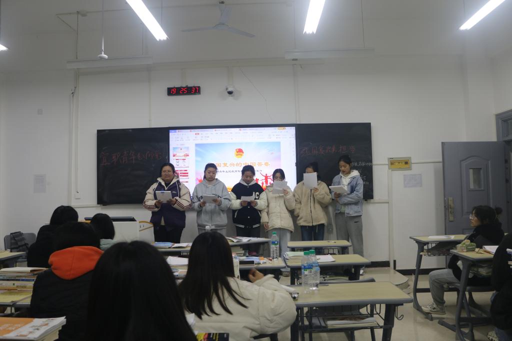 为引导广大青年学子以青春之我、奋斗之我,为民族复兴铺路架桥,为祖国建设添砖加瓦125日晚,护理学院班教室开展“宜职青年心向党,强国复兴勇担当”主题团日活动。