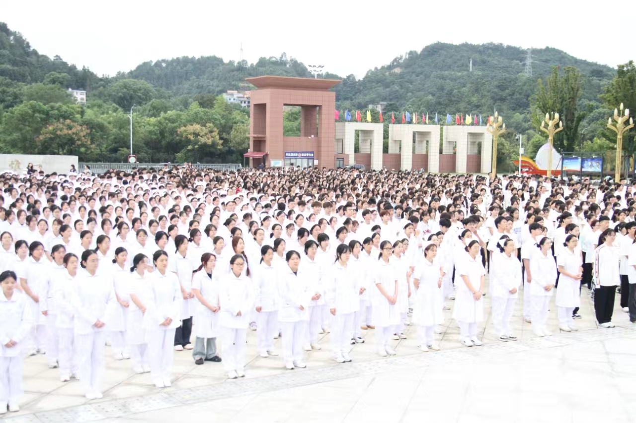 礼毕,院党总支书记吴少林在国旗下发表讲话,他对同学们提出几点希望:第一,始终坚定不移听党话、跟党走,坚定理想信念,厚植家国情怀,努力成长为担当民族复兴重任的时代新人;第二,努力成为“有理想、有道德、有文化、有纪律”的社会主义建设者和接班人;第三,坚持以爱国主义教育为引领,坚定理想信念,树立远大志向,努力学习,锤炼品德修养,为实现中华民族伟大复兴的中国梦贡献青春力量;第四,秉承“敬佑生命、救死扶伤、甘于奉献、大爱无疆”的崇高职业精神,以高尚的职业道德和精湛的专业技能,为社会提供优质服务,争做医德高尚业务精湛的人民健康守护者。随后,2024级新生代表陈艳同学发言,她表示作为新时代的青年学子,不仅要努力学习专业知识,提升自身素养,承担起时代赋予的使命和责任,更应该肩负起传承红色基因、弘扬爱国主义精神、培养国家安全意识的重任。最后,升旗仪式在《中国,我的爱》中结束。