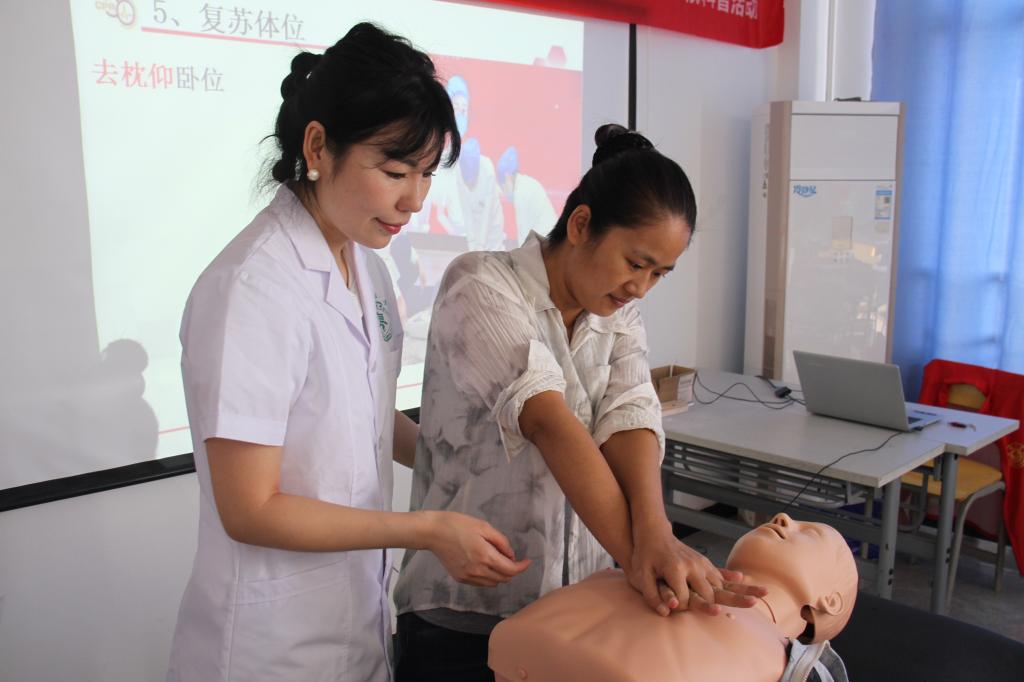 活动伊始,学院党员教师秦忠萍为现场居民带来一场关于心肺复苏(CPR)的急救知识讲座。她以生动的案例讲解和现场演示,详细介绍心脏骤停的危害、心肺复苏的重要性以及正确的操作步骤。秦忠萍特别指出,心脏骤停的黄金救援时间仅有4分钟,掌握心肺复苏技能对于提高院外心脏骤停存活率具有重要意义。随后,她还邀请几位居民上台进行实操演练,并在一旁耐心指导,确保每位参与者都能准确掌握心肺复苏的核心技能。