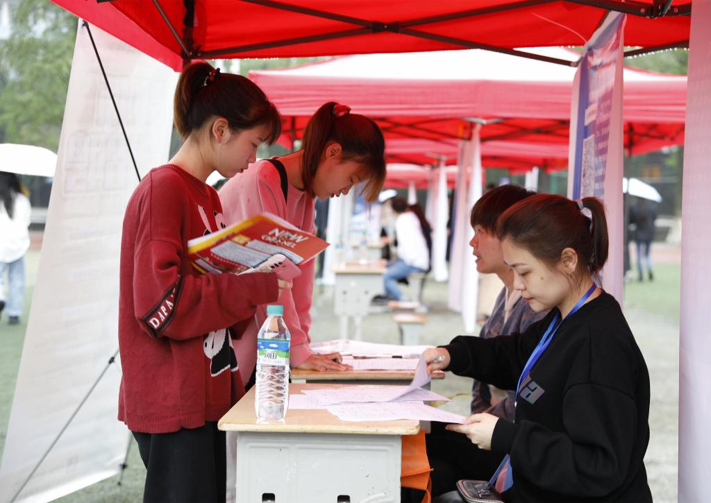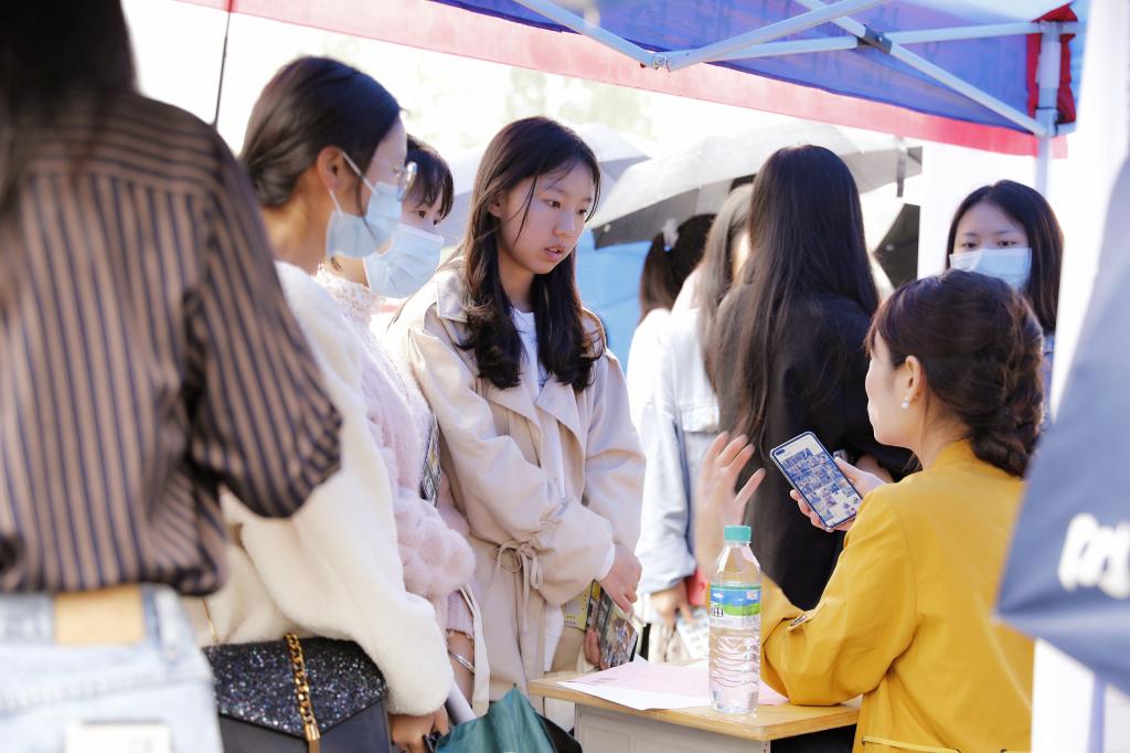 生们介绍单位的基本情况、薪资待遇等情况,招聘会现场气氛热烈。
