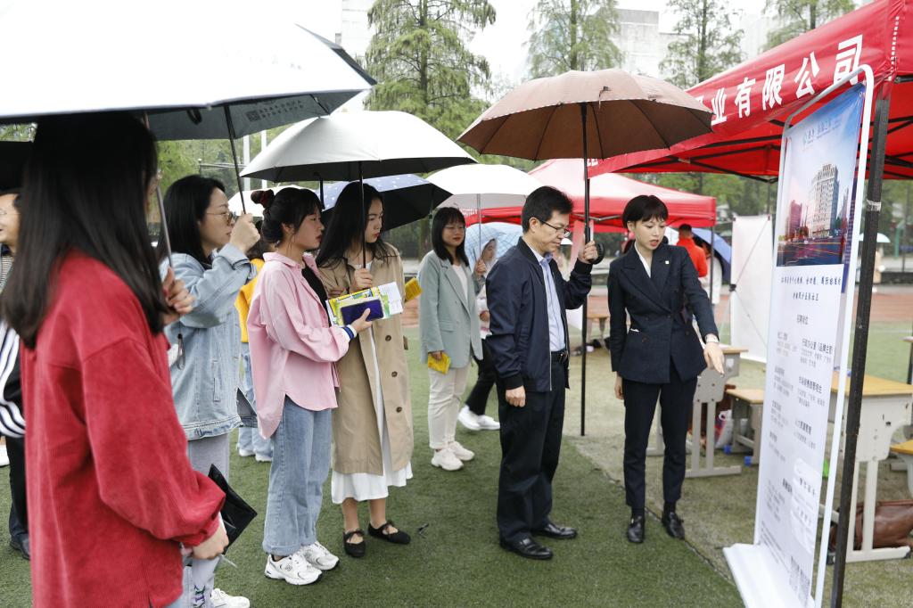 招聘会上,杨云山、易滨秀等领导与同学们面对面交谈,询问大家的就业情况,“有没有合适的就业岗位?”“对就业有什么期望?”“对学校在就业服务、就业指导等方面有什么建议没有啊?”校领导鼓励同学们端正心态、树立信心、积极就业。