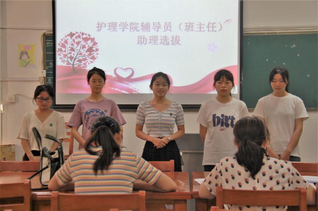为进一步做好2021级新生班级的教育与管理工作,帮助新生尽快适应大学生活,建设良好的班风、学风,促进学生的全面发展,6月10日,护理学院学院在阅览室行了新生班主任助理选拔的面试工作。护理学院党总支书记胡蓉、护理学院学工科长曲晴学院出席本次竞选活动并担任评委。