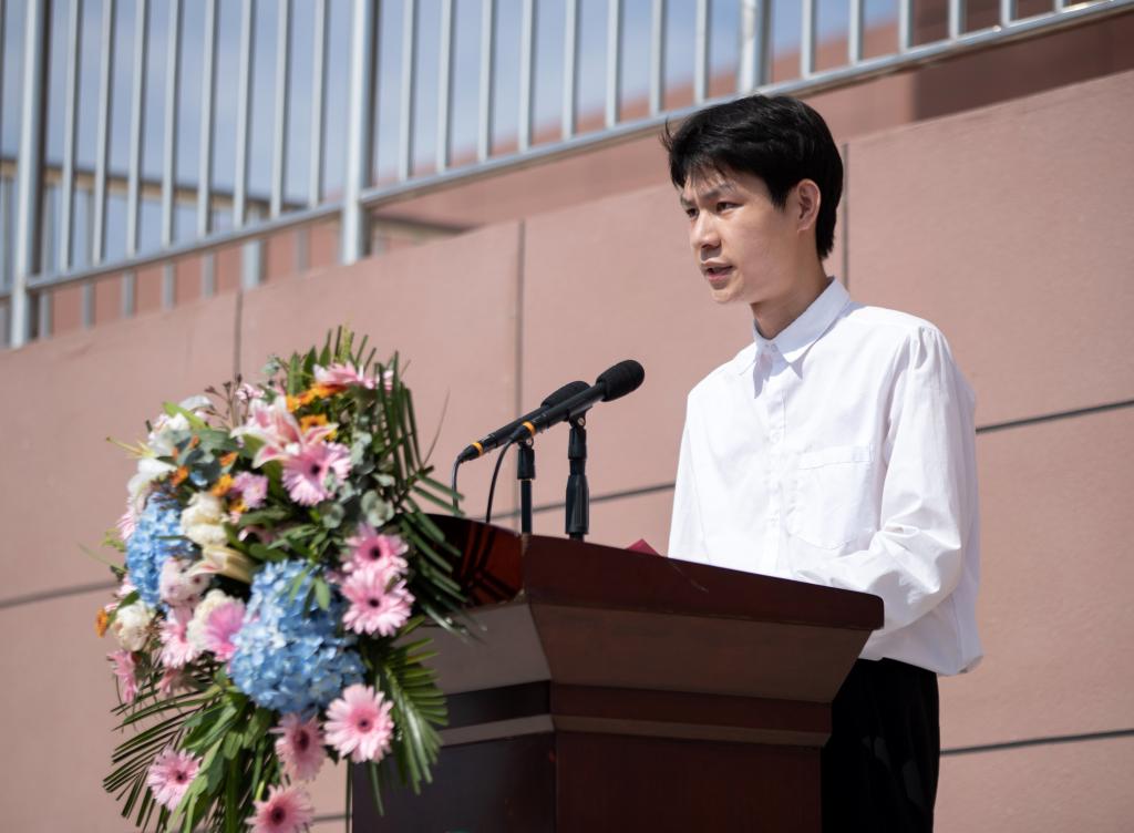 来自19级高小教6班的谢年峰代表在校生发言,感谢学长学姐们对学弟学妹们的关心帮助,愿即将毕业的他们“此去繁花似锦,再相逢依旧如故”。