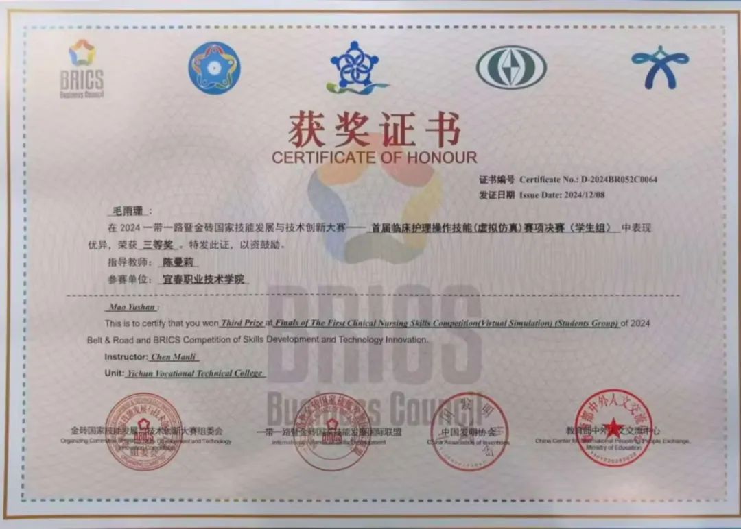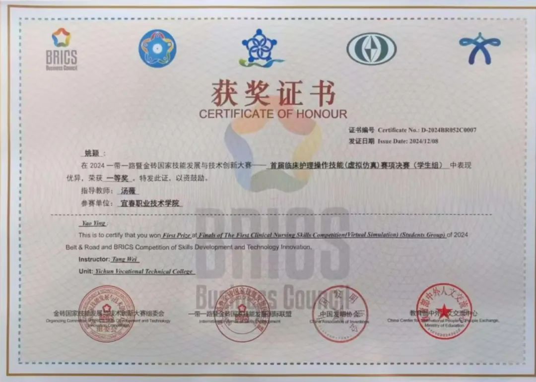 12月5~8日,“一带一路”暨金砖国家技能发展与技术创新大赛之首届临床护理操作技能(虚拟仿真)决赛在上海健康医学院落下帷幕,此次决赛,共有来自本科、高职院校的200支队伍参加。英国上市公司365参赛选手姚颖、林诗琦、史欣梦、毛雨珊四位同学,在易国萍、汤薇、刘世兰、陈曼莉四位老师的悉心指导下,经过全国选拔赛的激烈角逐,成功晋级决赛,并最终脱颖而出,斩获1个一等奖、1个二等奖、2个三等奖,同时学校获评最佳组织奖。