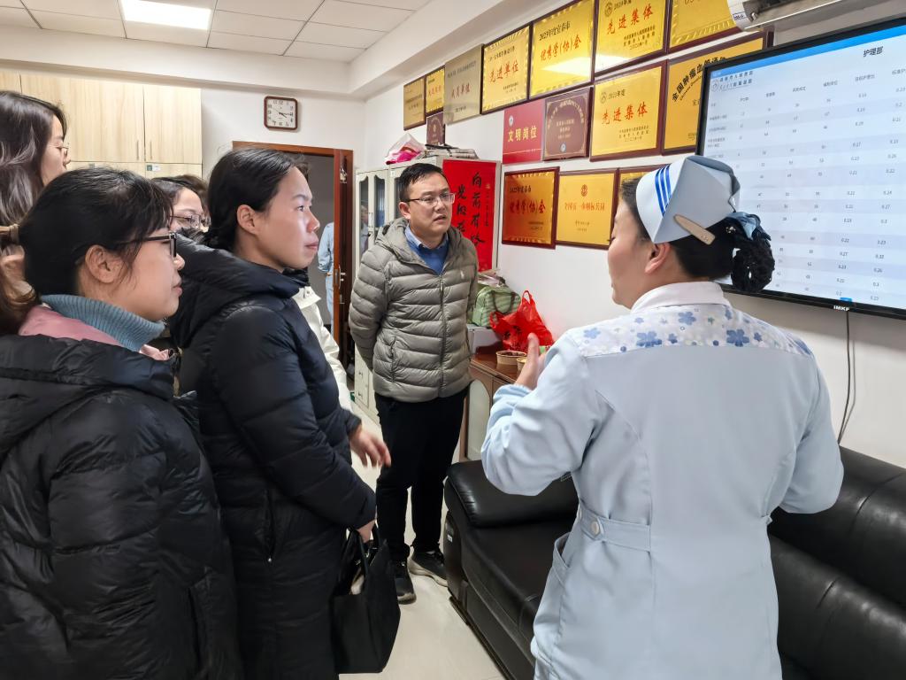 座谈会后,易国萍一行在王敏的陪同下,参观医院的急诊科、康复科、老年病房等科室。每到一处,他们都认真听取科室负责人的介绍,详细了解新技术、新设备的应用情况,并就如何将这些前沿技术融入护理教育进行深入探讨。