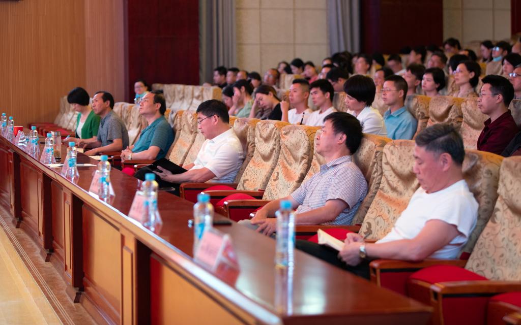 在家的校领导及全校教职工共计五百余人一同聆听了讲座,讲座由校党委书记任军主持。