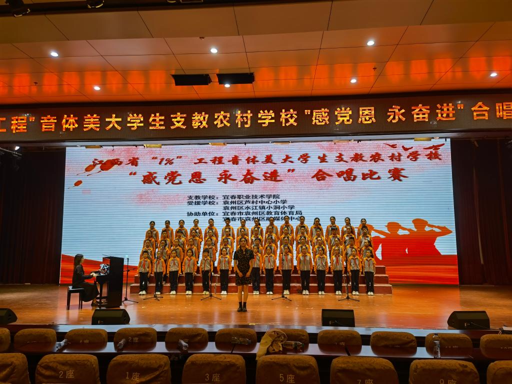 学校各级领导对此次比赛非常重视,前期多次组织召开协调会,确保比赛任务的顺利完成。艺术与设计学院音乐专业教师更是利用寒假时间,通过线上教学的方式教支教学生如何挑选合唱队员、如何指挥、如何高效备赛。4月以来,艺术与设计学院的党员教师们先后多次到各乡村小学为合唱比赛提供专业指导,袁州区教育体育局、万载县教育体育局和融媒体中心的工作人员也积极配合此次比赛各个环节的开展。经过赛前积极准备、老师们的细心指导和袁州区融媒体中心的辛苦录制,当日下午,参赛视频录制圆满完成,孩子们共同带来合唱歌曲《让我们荡起双桨》和《红星闪闪》唱出了音体美大学生在支教农村小学中对于乡村小学艺术熏陶的成果,也唱出了艺术教育的重要意义。