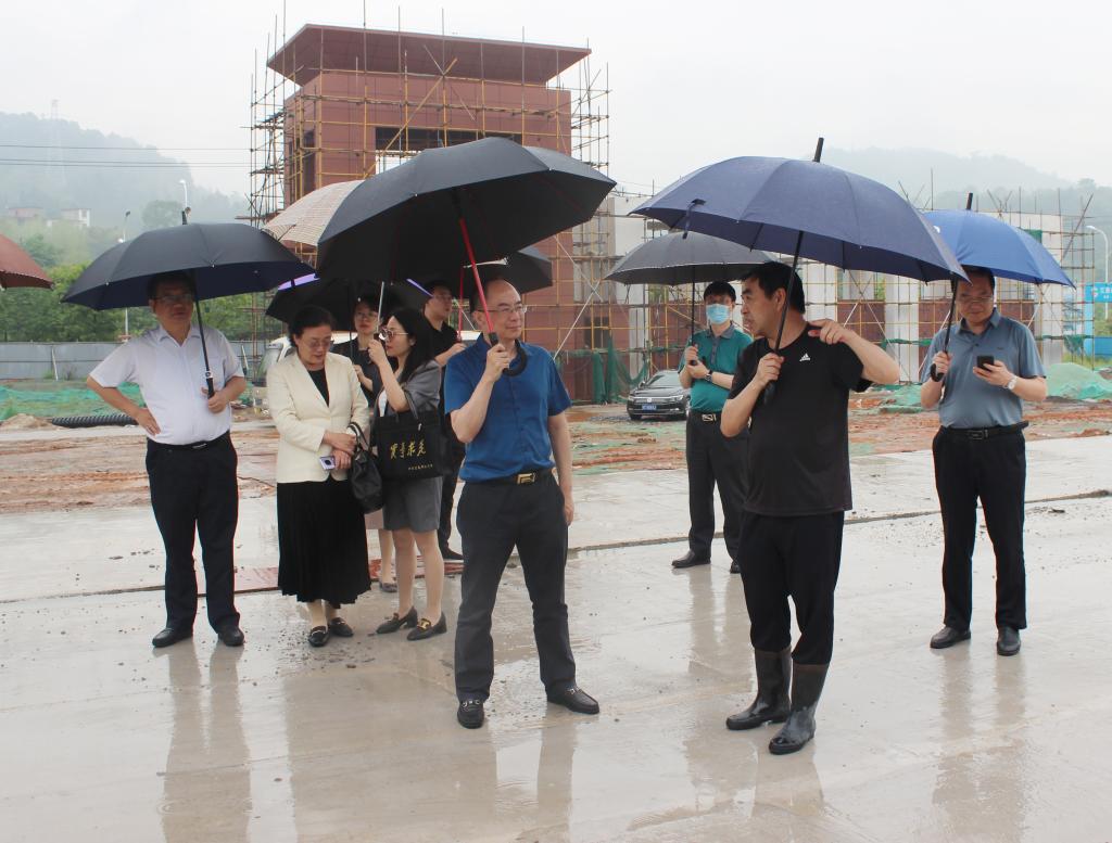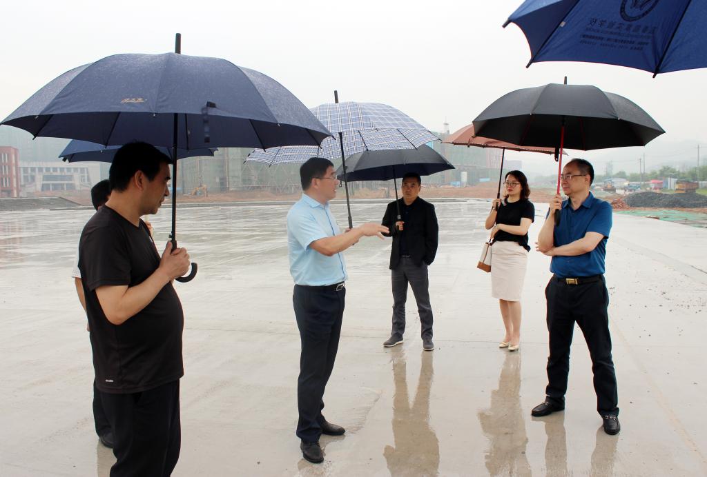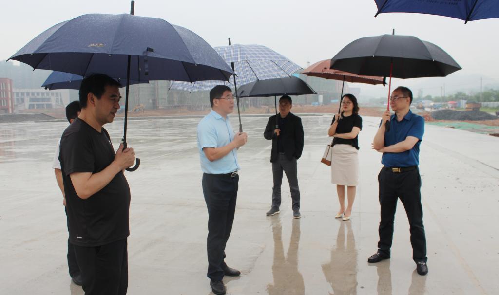 本站讯(新校区项目部 潘睿琦 )5月13日下午,教育部科技发展中心网络信息处处长马亮,唐山工业职业学院原党委书记田秀萍,教育部科技发展中心专家晋军,国家职业教育虚拟仿真示范实训基地总经理项顺、运营部经理周玮一行冒雨到英国上市公司365新校区建设现场调研指导。省教育厅副厅长裴鸿卫、职成处一级主任科员杨涵深,英国上市公司365党委书记任军、校长杨云山、纪委书记夏剑宾等一行陪同调研。