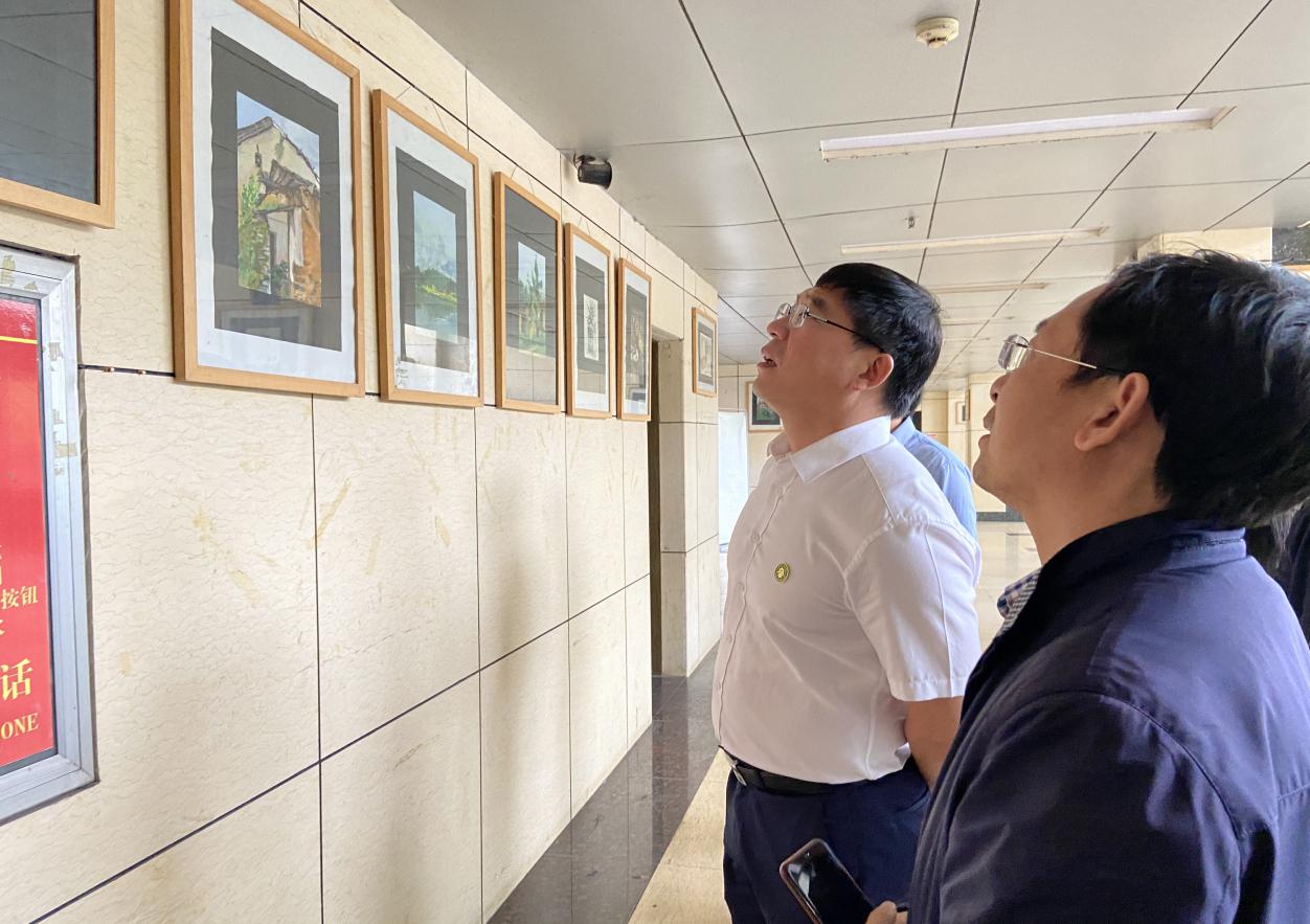 5月22日,校党委书记任军,学校党委委员﹑副校长易滨秀,学校党委委员﹑副校长刘军等一行来到实训大楼一楼观摩艺术与设计学院学生在上高天岭风景写生基地写生创作作品。作品种类有素描,水粉,创意写生。