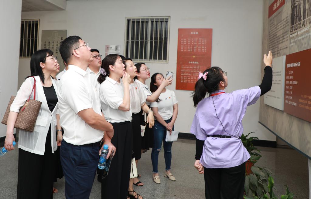 本站讯(机关第二党支部 张晋晋)为庆祝中国共产党建党100周年,进一步激发广大党员爱党爱国爱校的思想情感,6月23日下午,机关第二党支部在支部书记熊淑萍的带领下,组织全体党员赴宜春学院参观红色文化教育基地,开展“初心故事”主题实践活动。校党委书记任军同志以普通党员身份参加了此次活动。