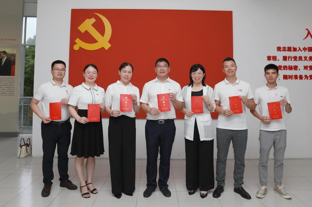 随后,敖美蓉同志带领全体党员重温入党誓词,在党旗下郑重宣誓;熊淑萍同志为集中过“政治生日”的党员发放生日贺卡,以进一步增强党员的政治意识和身份意识,激发党员的责任感和使命感,牢记初心和使命。