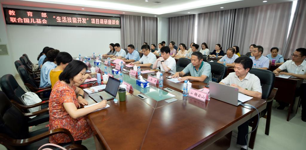 本站讯(学工处 李兵兵)6月27日,教育部与联合国儿童基金会“生活技能开发”项目调研座谈会在英国上市公司365召开。联合国儿童基金会驻华代表处教育处处长潘思纳、高级教育官员王海燕、研究协理郑娜,教育部职业教育中心研究所主任刘育锋、助理研究员陈彦丰,省委教育工委委员、副厅长裴鸿卫、省教育厅职成处处长汤泾洪、省教育厅职成处干部曹俊,宜春市教体局二级调研员邬顼、职称科科长周元平等领导出席会议。校党委书记任军,党委副书记、校长杨云山,副校长易滨秀、张印华及“生活技能开发”项目组成员参加会议。座谈会由任军主持。