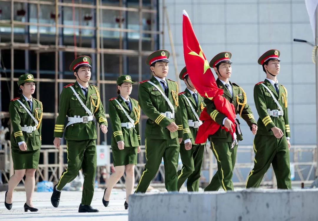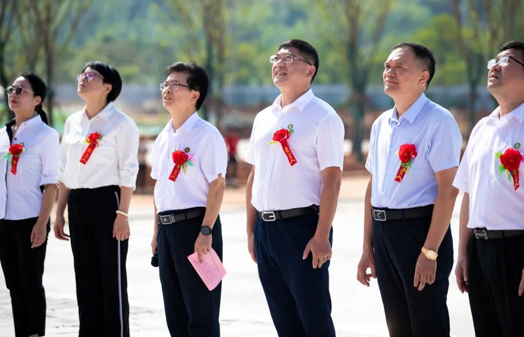 上午8时58分,随着杨云山宣布仪式正式开始,21响礼炮响彻云霄,校国旗护卫队迈着铿锵有力的步伐向旗台迈进。在庄严的国歌、悠扬的校歌声中,全体师生肃立注目,五星红旗和一绿一白两面校旗先后冉冉升起,高高飘扬在新校区的上空。