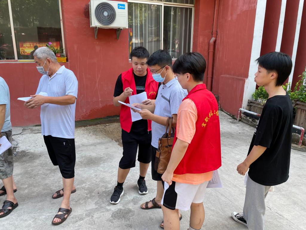 在社区工作人员的带领下,志愿者们耐心地向当地居民讲解接种疫苗的相关流程及注意事项,并帮助社区工作人员做好相关登记工作。烈日下,志愿者们始终坚守一线,热心接待每一位前来咨询的居民,且耐心协助一些年纪较大、无法自行填写告知书的老人,良好的服务态度受到了居民们的一致好评。随后,部分志愿者分成三支队伍前往电信小区,挨家挨户上门普查社区居民疫苗接种情况,进一步为疫情防控奉献青春力量。