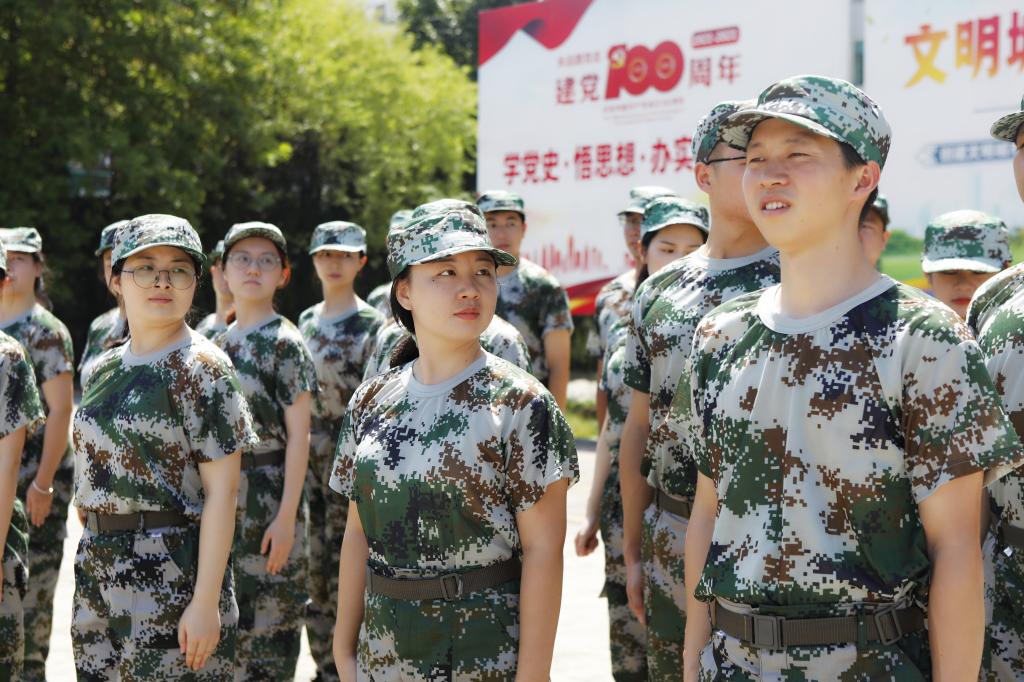 开班仪式后,新教师们开始为期三天的军训。骄阳似火、热浪灼人。虽然高温难耐,但教师们却没有丝毫倦怠,不迟到不早退,以饱满的热情练好每个动作,站军姿、立正稍息、转身、敬礼、齐步正步走……严格听从教官的每一个指令。军训队伍整齐方正,步伐整齐划一。通过军训,新教师们集体主义观念进一步强化,凝聚力和组织纪律性不断增强。