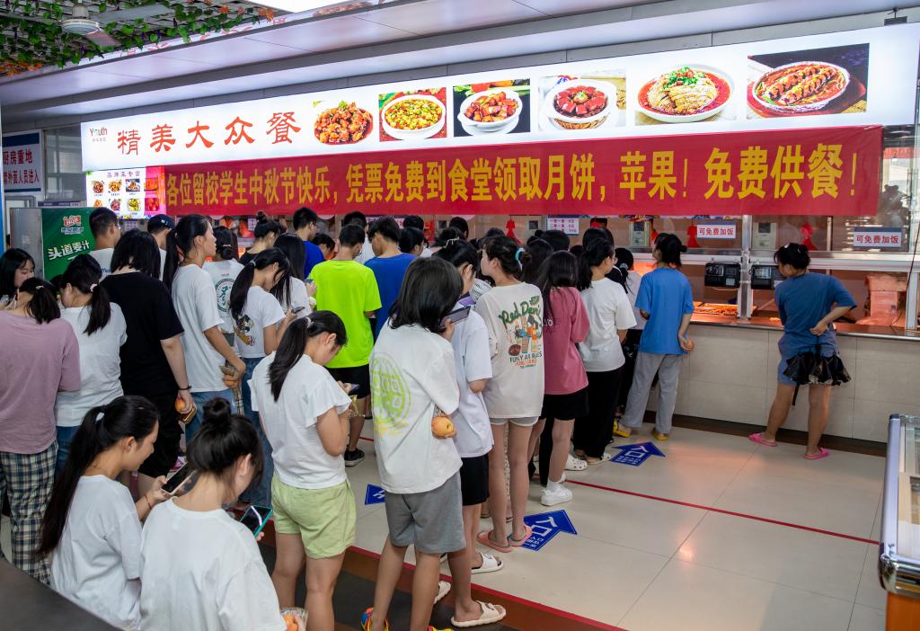 本站讯(学工处 李兵兵)月饼传温情,浓情寄相思。今年的中秋,对于许多留在校园无法回家团聚的宜职学子来说是一个温暖而又难忘的日子。9月21日中午,校党委书记任军,党委副书记、校长杨云山,党委委员、副校长张印华,党委委员、统战部长韩海荣等领导深入学生食堂与同学们共度中秋,面对面话家常。