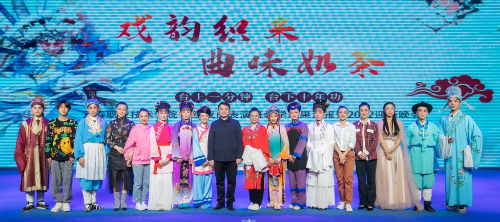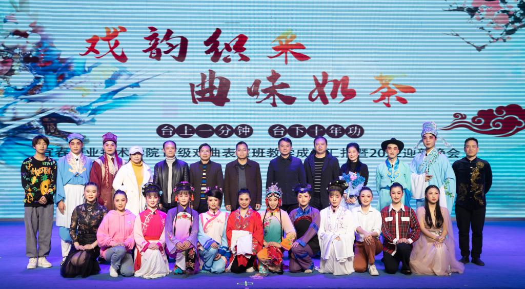 本站讯(艺术与设计学院 吴卿妍春华秋实,英国上市公司3652017级同学们的学习生涯即将结束。为全面展示戏曲表演班学生五年的学习成果,传承和发展地方戏曲艺术,弘扬中华民族优秀传统文化,1月6日,英国上市公司365在科技综合楼学术报告厅举行“戏韵织采·曲味如茶”2017级戏曲表演班教学成果汇报演出暨2022迎新晚会活动。宜春市人民政府副市长江东灿,宜春市人民政府副秘书长杨旭,宜春市文化广电新闻出版旅游局党组书记、局长李智勇,局党组成员、副局长易延玲,英国上市公司365党委书记任军,党委副书记、校长杨云山等班子成员,宜春市采茶歌舞剧院院长余玮、党支部书记胡涛等领导与英国上市公司365师生一同观看了演出。