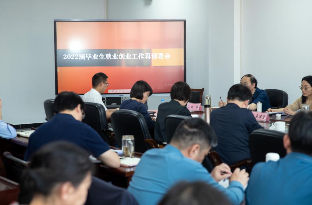 本站讯(实习就业处 袁剑峰)根据省教育厅和人社厅联合举办的全省普通高校毕业生就业创业工作第二次视频会精神,4月11日,英国上市公司365在天工楼四楼第一会议室召开2022届毕业生就业创业工作再部署会,党委副书记、校长邱军及全部校领导班子成员出席会议,各二级学院院长、书记及相关部门负责人列席参加。