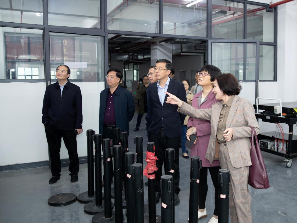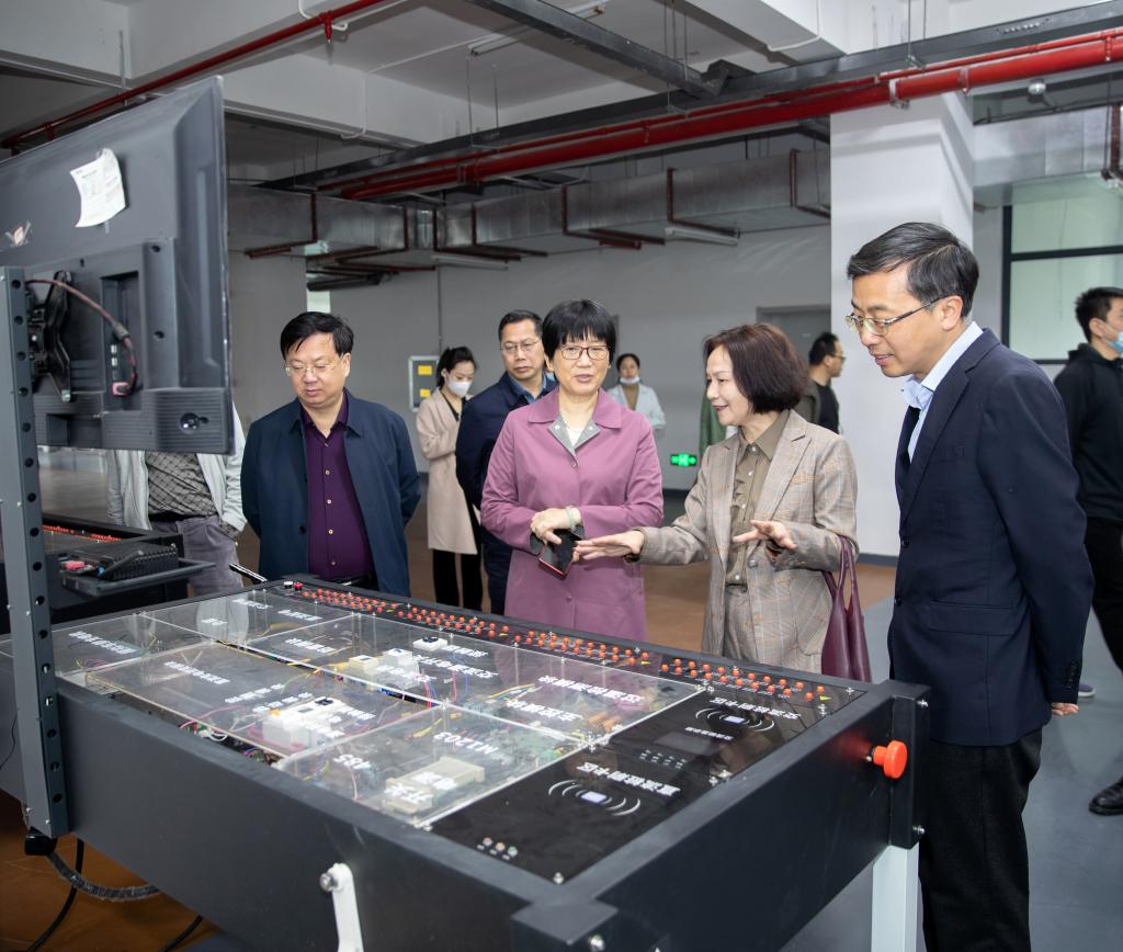 调研组在新校区先后实地考察了国轩产业学院、宜春市公共实训基地、体育馆、VR虚拟仿真实训基地,了解新校区建设情况。