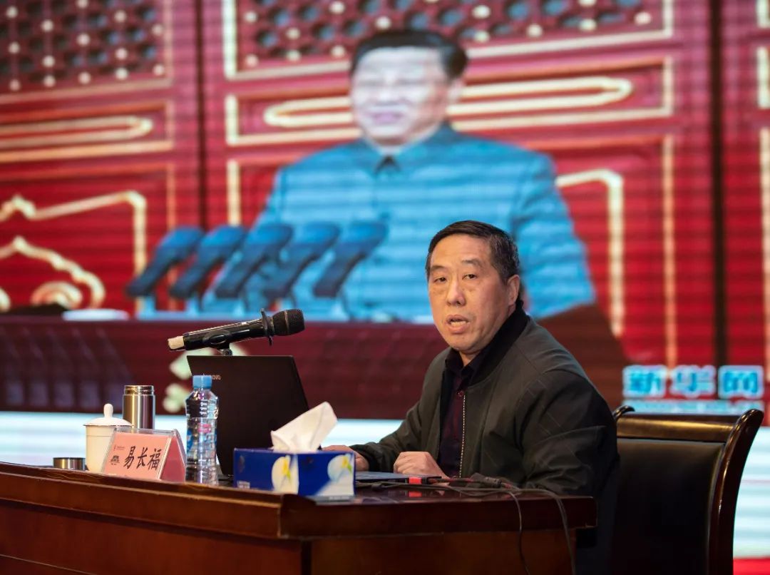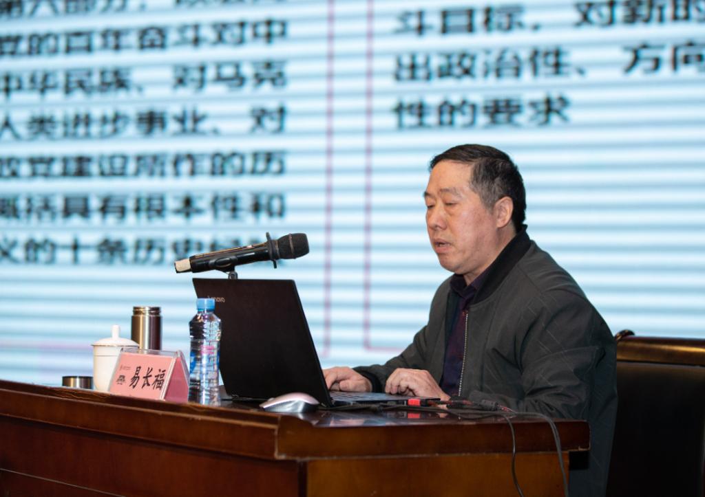 本站讯(党委宣传部 易婧)12月7日下午,市委宣讲团成员、市委宣传部二级调研员易长福来到英国上市公司365,在科技综合楼学术报告厅为师生们宣讲党的十九届六中全会精神。在家校领导、中层干部、党员教师与学生代表共计四百余人一同聆听了宣讲。宣讲会由校党委副书记高健群主持。