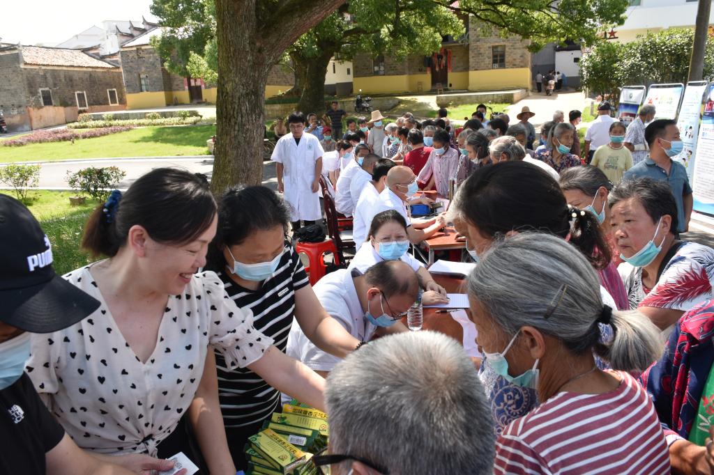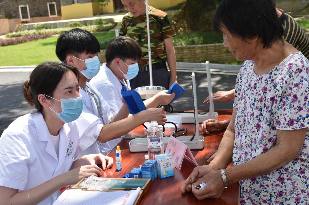 本站讯(医学院 李莫娴)为积极响应党史学习教育“我为群众办实事”号召,深入学习贯彻习近平在庆祝中国共产主义青年团成立100周年大会上的重要讲话精神,着眼解决乡村人民群众看病就医的实际困难,6月15日,医学院党总支组织内科、外科、儿科、妇产科、检验科、中医科高职称教师及学院全体班子成员带领团员青年奔赴樟树市昌傅镇太平村开展暑假“三下乡”主题党日活动,为群众免费提供医疗咨询、发放防暑药品、宣传防病小知识等。校纪委书记刘平涯、副校长刘叶建到场指导,并实地走访慰问困难村民。