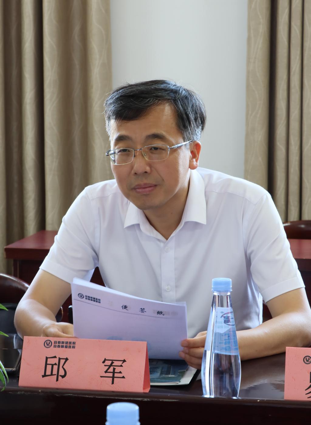 在宜春市第二人民医院,邱军一行与院长涂德幸、副院长李平、林汝平、谭启林、纪委书记范丰及科教科、护理部等负责人调研交流。