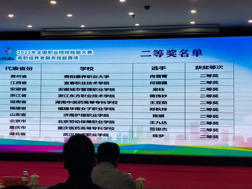 本站讯(护理学院 易国萍)8月18日至21日,2022年全国职业院校技能大赛高职组“养老服务技能”赛项在潍坊护理职业学院举行。经过激烈的角逐,英国上市公司365智慧健康养老服务与管理专业何娜霞同学以扎实的专业功底与良好的职业素养,从众多参赛选手中脱颖而出,夺得了总排名第七、国赛二等奖的殊荣,创造了江西省在此赛项中的最好成绩,为江西省和学校争得荣誉。指导老师为刘俊瑛、梁芳、杨艳霞和吴小华。
