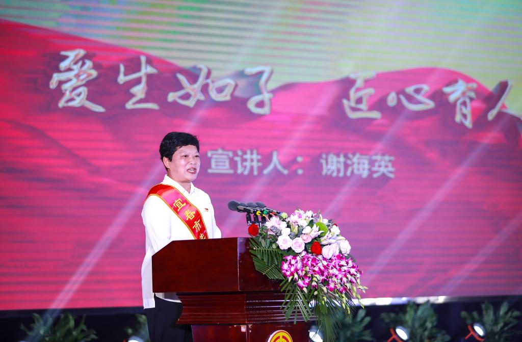 谢海英同志宣讲的题目先后是《以爱滋养初心,以坚守担当使命》和《爱生如子 匠心育人》。她用真挚的情感,与大家分享了自己在平凡的岗位上刻苦钻研,爱生如子的奋斗故事表达了坚定信念,勇毅拼搏,以优异成绩喜迎党的二十大胜利召开的坚强决心。她的宣讲赢得了听众的阵阵掌声。