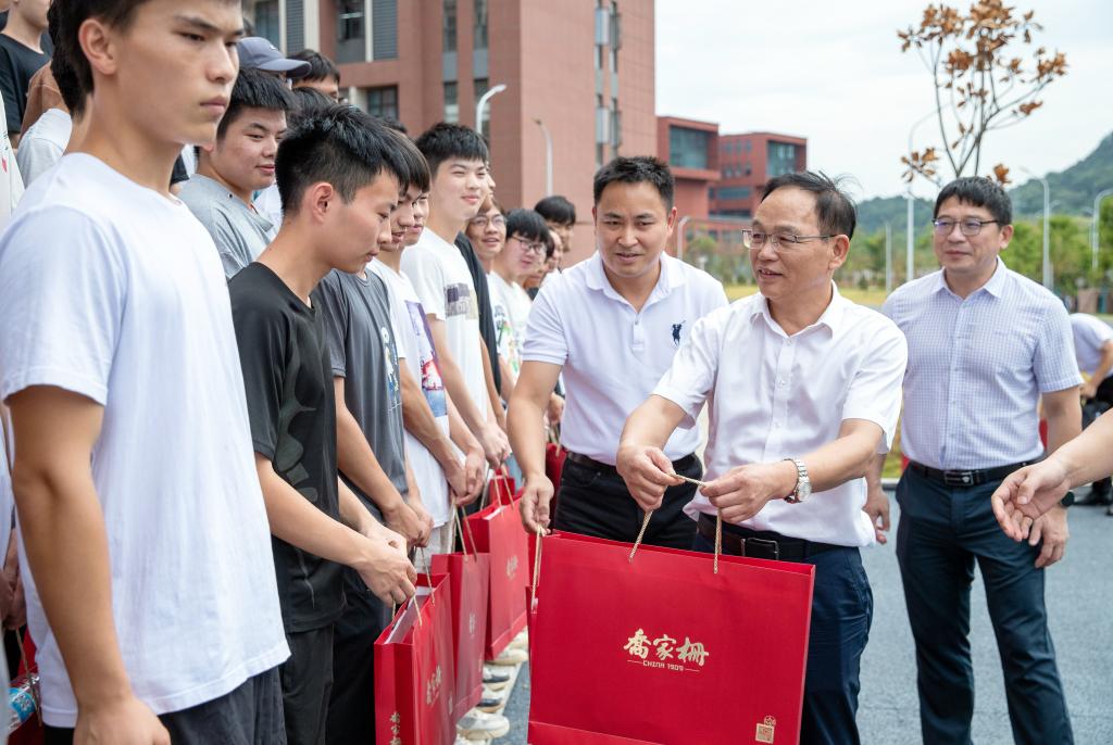 任军一行首先来到国轩产业学院看望了教师代表胡杰及部分学生代表,并为他们送上精美的中秋月饼。
