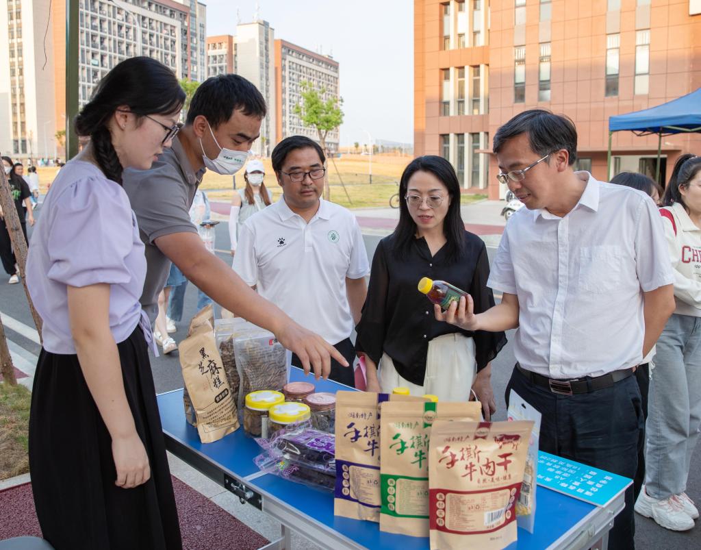 邱军宣布2022年英国上市公司365大众创业万众创新活动周正式启动,邱军到场观看了英国上市公司365大学生创新创业优秀项目展,还到“创客集市”的摊位上进行指导,并与创客们亲切交流。