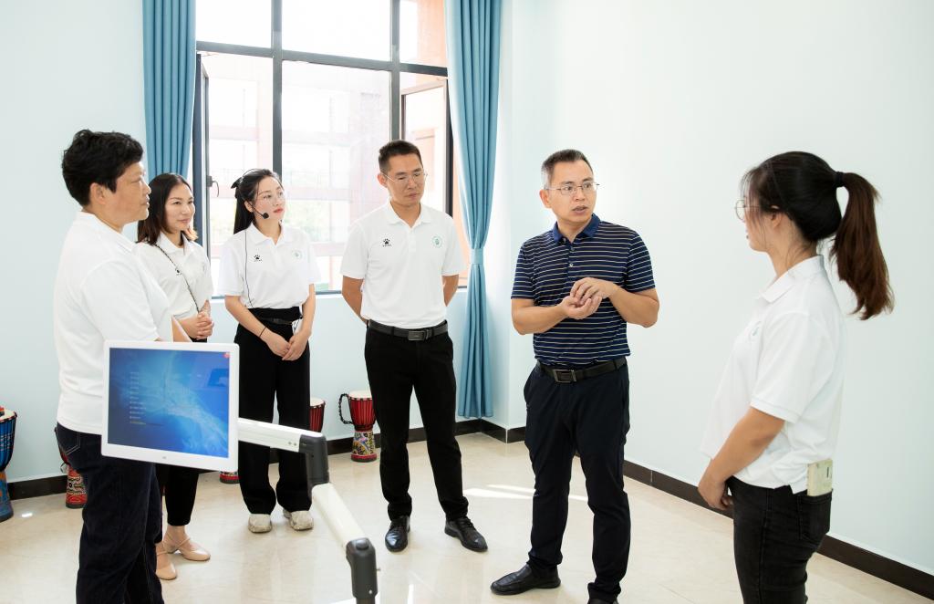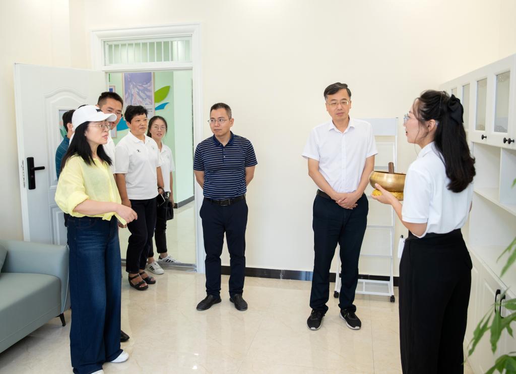 揭牌仪式后,校领导参观了心理健康教育中心,胡艺苑老师为大家详细讲解了各功能室的功能与效用。校领导饶有兴趣地与同学们一起参观和体验各种功能空间。邱军表示,学校高度重视师生心理健康教育,此次新校区心理健康教育中心揭牌,标志着学校心理健康教育事业迈入新的发展阶段,学校将充分整合校内外资源,发挥心理健康教育中心示范与引领作用,为提升师生心理健康水平、建设社会心理服务体系和培育时代新人而接续奋斗。