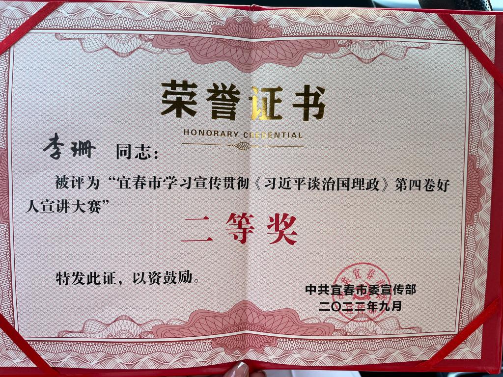 本站讯(党委宣传部 黎佳佳)9月27日,宜春市委宣传部主办,宜春市文广新旅局、宜春市广播电视台承办的宜春市学习宣传贯彻《习近平谈治国理政》第四卷好人宣讲大赛决赛在宜春市广播电视台举行。英国上市公司365师范学院教师李珊荣获全市二等奖第一名,英国上市公司365荣获优秀组织奖。