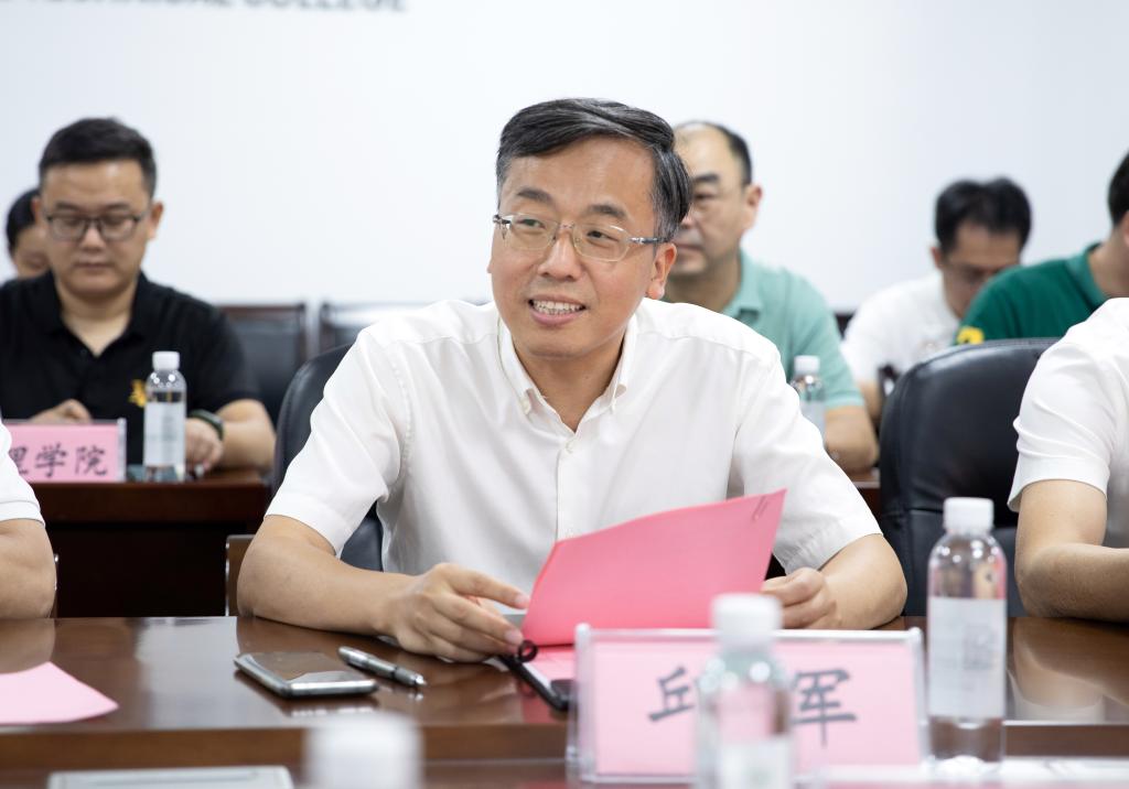 座谈会上,任军对专家组的到来表示热烈欢迎,对教育部科技发展中心的支持与帮助表示衷心感谢,并介绍了学校的基本情况;易滨秀介绍了赣西综合性虚拟仿真实训基地的整体设计和建设情况;信息工程学院党总支书记罗来曦介绍了VR专业建设和VR资源研发情况;网络信息管理中心主任杨丹介绍了数字化校园建设情况。