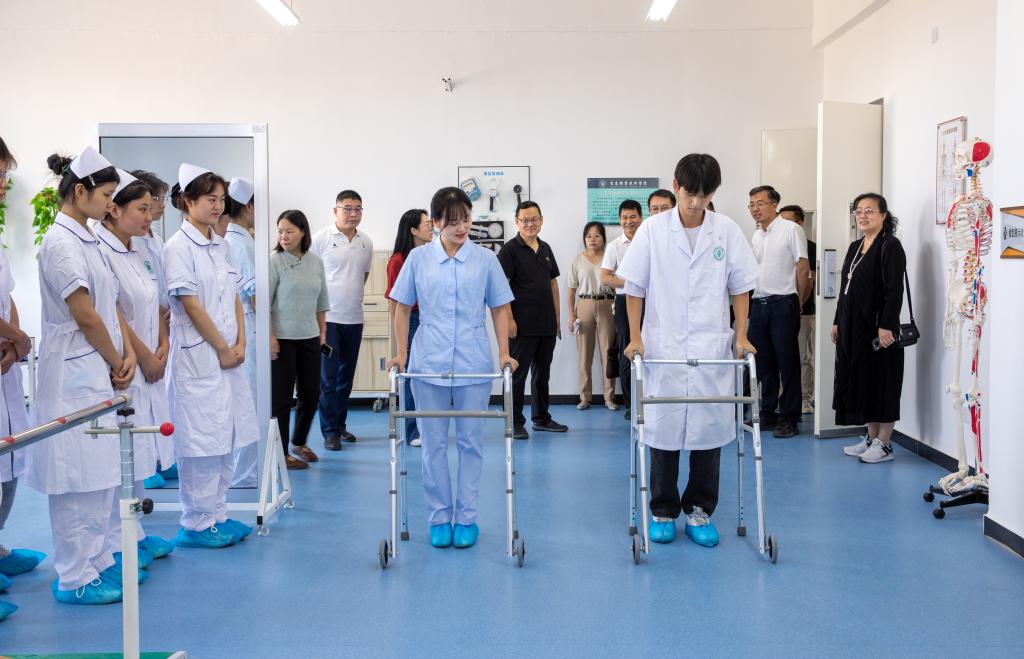 专家组首先参观考察了锂电实训基地,养老实训基地,解剖实训基地,中医、美容、口腔医学实训基地,赣西综合性虚拟仿真实训基地,了解了英国上市公司365“一锂一老一小”三大专业群的实训基地建设情况和虚拟仿真实训基地建设情况。