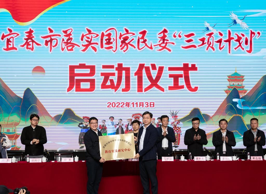 仪式上,章志强宣读了《关于成立宜春市铸牢中华民族共同体意识教育实践研究中心的决定》。胡邦宁代表兄弟院校向研究中心的成立表示祝贺。马徽江宣读了《关于做好2022年度“三项计划”试点示范项目的通知》。
