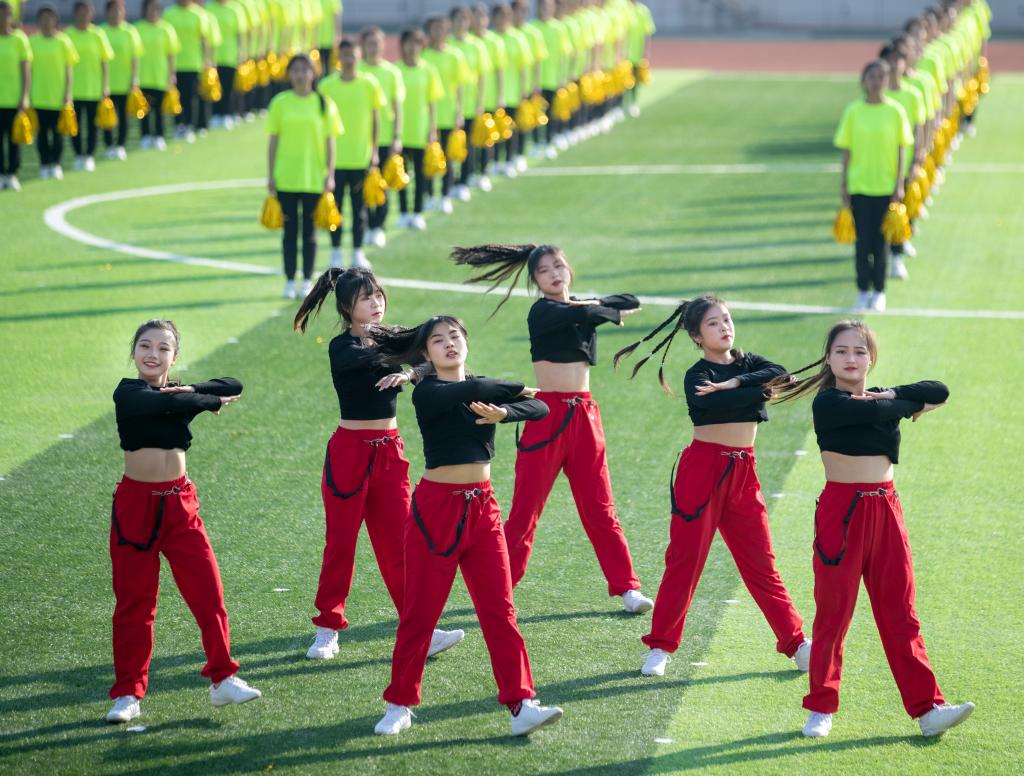 舞蹈《一起向未来》活力满满,六种色彩在操场上自由跳动,体育精神呼之欲出。绿茵场处处洋溢着青春的正能量。