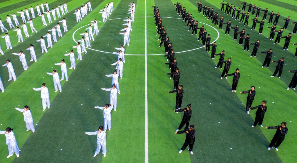 武术《天地鉴》气势磅礴。刀枪剑棍轮番上阵,尽显中华武术之精魂。鼓声起落中,身着黑白两色太极服的表演者来回穿梭,巧妙走位,引人进入阴阳相济的太极世界。